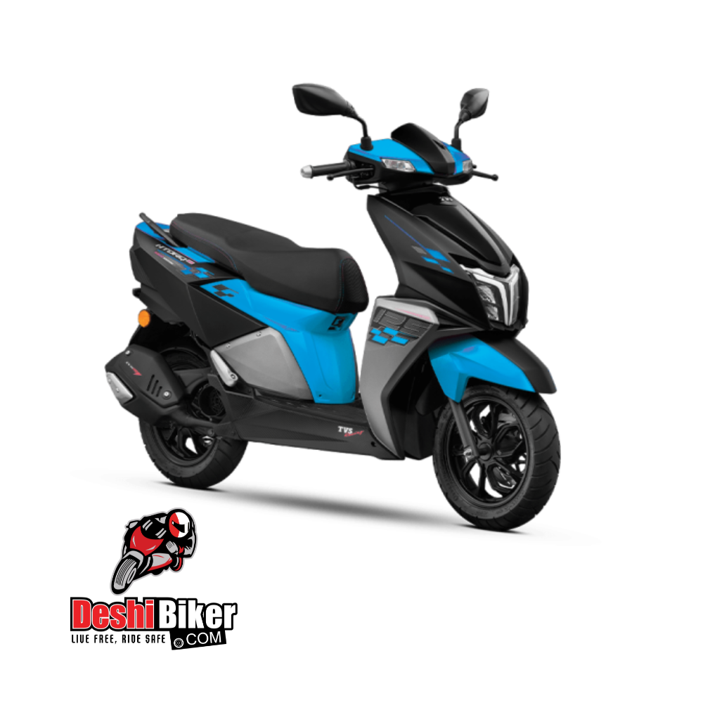 TVS Ntorq Race Edition has Stealth aircraft-inspired design which is pretty eye-catching. The tail lamp, unique-looking wheels, and stunning headlight give it sporty look. The Ntorq has sports chequered flag graphics along with a ‘Race Edition’ emblem which looks pretty cool. TVS Ntorq is equipped with CVTi-REVV 124.79 cc, single-cylinder, 4-stroke, 3-valve, air-cooled, SOHC engine that provides 6.9 kW @ 7000 rpm max power and 10.5 Nm @ 5500 rpm maximum torque. It can deliver a good acceleration rate and has an automatic gearbox for better transmission. It can reach a top speed of 95 km/h. TVS Ntorq is now available in three amazing colors Red Black, Yellow Black and lastly Marine Blue.