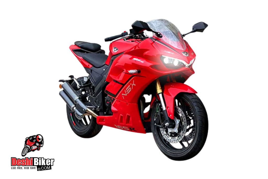 Speeder NSX 165R V3 is the newest addition of the Speeder motorcycle in Bangladesh. It is available with an attractive design with Lifan’s NBF2 engine. Design & looks: Speeder NSX 165R launched with an amazing look with edgy and curve design. The first thing you will notice of this bike is the front fairing, exhaust and headlight unit. The fairing looks muscular and edgy which is perfectly enhances the appearance of this motorcycle. The bulky fuel tank contains 14 liters of fuel. Speeder NSX 165R is equipped with a single-cylinder, four-stroke, liquid-cooled, 164.4cc engine that can produce 18.4 bhp maximum power at 10,000 rpm and 14.6 Nm of torque at 8000 rpm. Only Red color is available in Bangladesh, Speeder NSX 165R v3 price in Bangladesh is 369,900/- BDT.