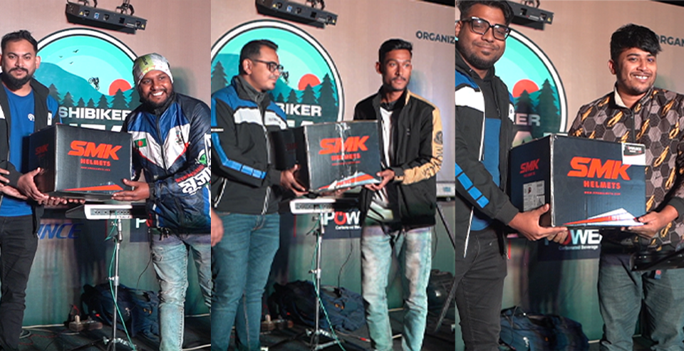 SMK Helmets were handed over among the three riders who had completed the dirt race in the lowest time, Studds Helmets were also given to the raffle draw winners. DeshiBiker Funfiar season 1 ended with the melodious performance of Bind The Band.