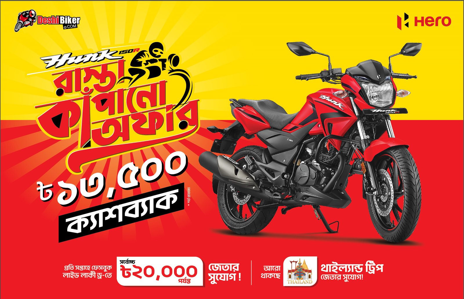 Win Thailand Trip & Get 13,500 Taka Cashback By Purchasing Hero Hunk 150R