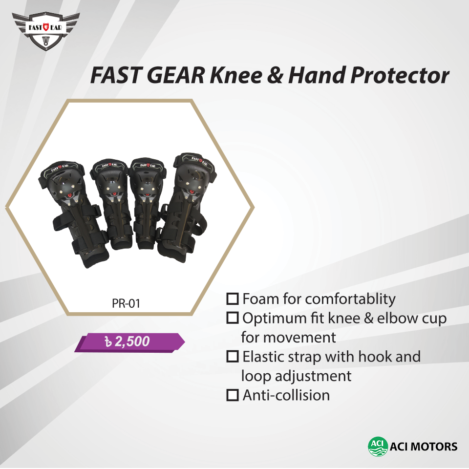 - Fast Gear Knee & Hand Protector (PR – 01) – Knee and hand protector are very much useful for the rider and they are very necessary accessories indeed. It has features like foam added for comfortability, optimum fit knee & elbow cup for movement, elastic strap with hook and loop adjustment and anti collision. The current price of the gear is BDT 2,500 only.