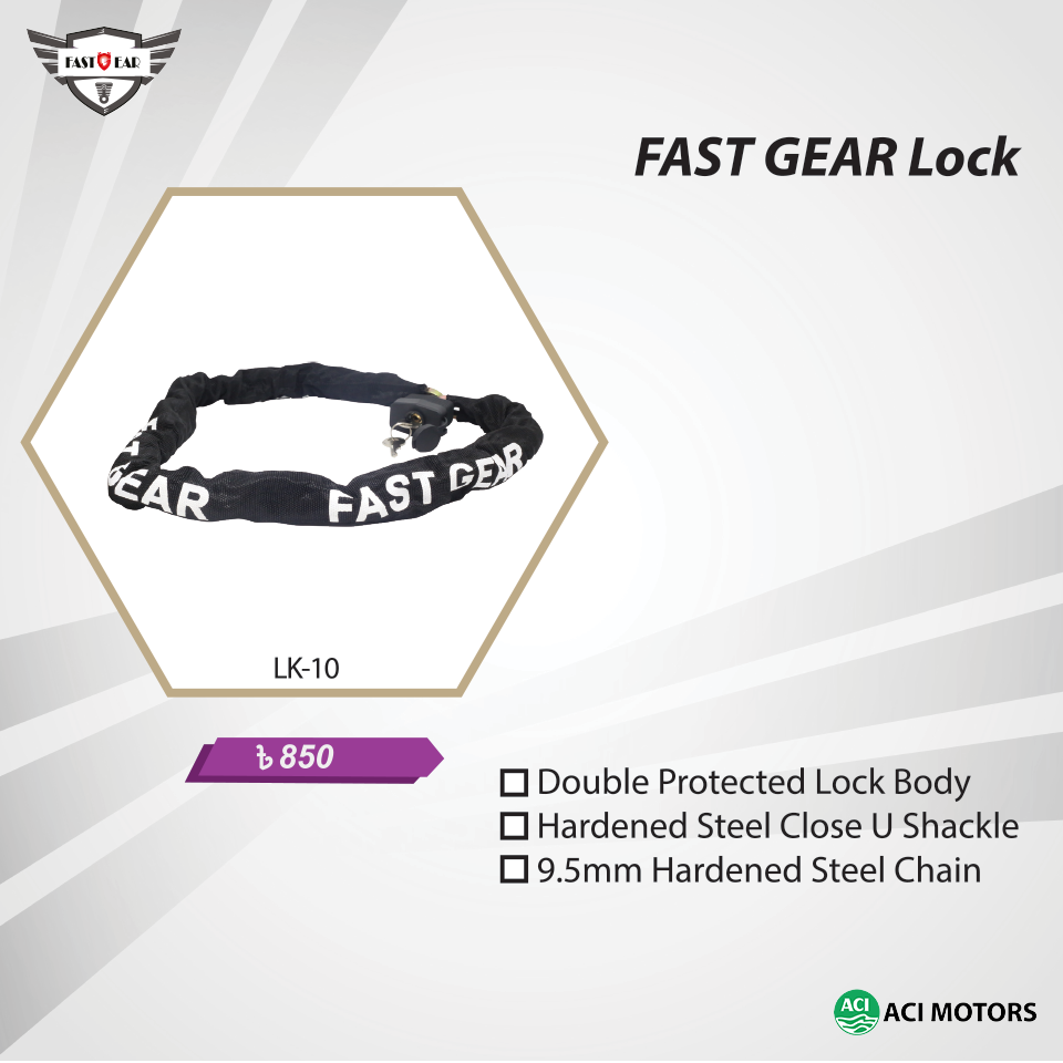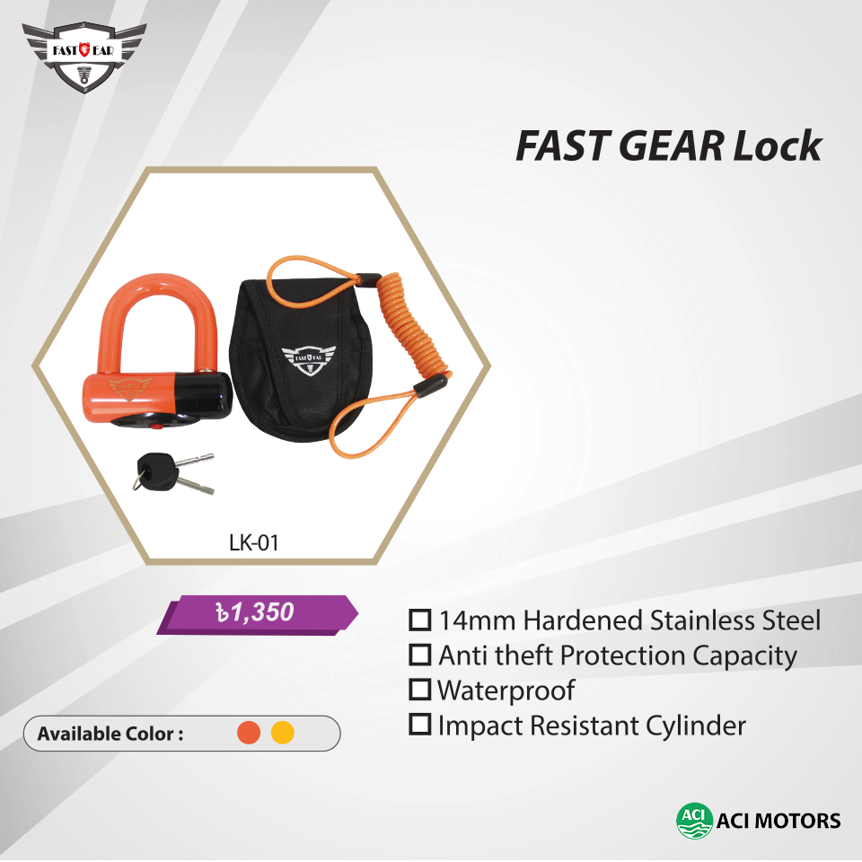 - Fast Gear Locks (LK – 01 & LK – 10) – There are couple of fast gear locks available. One of them is LK – 01 which consists of 14mm hardened stainless steel, anti theft protection capacity, waterproof and impact resistant cylinder. The price is BDT 1,350 only. Second one is LK – 10 which has double protected lock body, hardened steel close U shackle and 9.5mm hardened steel chain. The current price of the product is BDT 850 only.