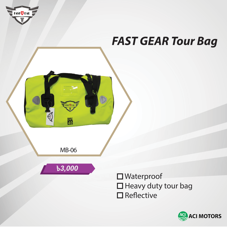 - Fast Gear Tour Bag (MB – 06) – Fast gear tour bag is one of the item of gear accessories of Yamaha. The price of the tour bag is BDT 3,000 only. It is waterproof and reflective.
