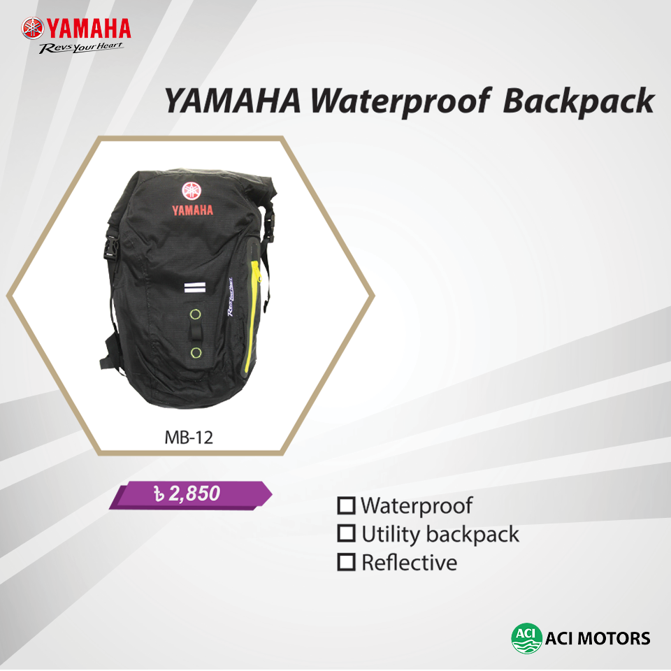 - Yamaha Waterproof Backpack (MB – 08 & MB – 12) – There are couple of Yamaha Waterproof Backpacks available in stock with different price ranges. One of them is MB – 12 which is waterproof, utility backpack and reflective. The price is BDT 2,850 only. Other one is MB – 08 which has all the features of MB – 12 but an extra ear plug hole is added there. The backpack is very attractive to look at and the price of the backpack is BDT 4,000 only.